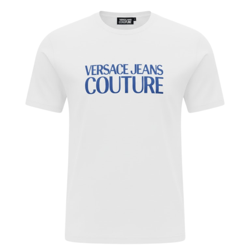 Large “VERSACE JEANS COUTURE” print across chest in high‑contrast colours.